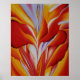 Esta es una reproducción de "Red Canna" de 1924 de Georgia O’Keefe. Esta prolífica artista norteamericana tenía treinta y seis años cuando creó esta obra maestra, que fue una continuación de sus esfuerzos por crear patrones abstractos a partir de las formas de la naturaleza. Esta "madre del modernismo norteamericano" había sido reconocida durante ocho años en el momento de este trabajo y fue este año cuando se casó con su compañero, Alfred Stieglitz. Esto fue solo el comienzo de su carrera en Nueva York Hawaii y Nuevo México. Sobrevivió a su esposo por cuarenta años, y murió en Santa Fe en 1986 a la edad de noventa y ocho años.
