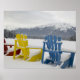 COPYRIGHT Cindy Miller Hopkins / SuperStock.com | CN01 CMI0065.jpg | Canadá, Alberta, Jasper, Jasper NP. Fairmont Jasper Park Lodge. Sillas coloridas alrededor del lago congelado, Lac Beauvert.