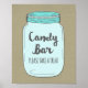 Poster de letreros de barra de caramelos para la ducha de bebé, ducha de novia o boda con un patrón rústico de raspones de campo y lindo ilustracion de tarro de albañil en azul claro. Perfecto para una ducha rústica para un bebé, un boda o una ducha de novia.