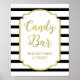 Poster de señalización de barra de golosinas para ducha de bebé, ducha de novia o boda con rayas clásicas en blanco y negro con borde dorado y grabado a mano. Perfecto para una ducha de bebé, un boda o una ducha de novia.