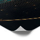 Una figura en una canoa de madera se adentra en un bosque sobre un agua bioluminiscente azul brillante. A lo lejos hay una luna creciente. Arte generativo inspirado en paisajes norteamericanos.
