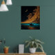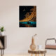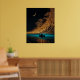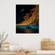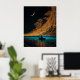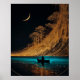 Póster Canoa de madera y luna creciente, agua azul brilla