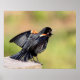 Un ave negra de alas rojas canta en una barandilla. Esta imagen fue tomada en New Paltz, Nueva York por Debbie Quick de Debs Creative Images. Para ver más fotos de Debbie, visita su sitio web en: www.debscreativeimages.com