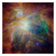 Esta impresionante imagen, "Caos en el corazón de Orión", mira hacia una guardería estelar en la constelación de Orión. Combinando datos de los telescopios Hubble y Spitzer, revela una danza cósmica de creación y destrucción. Tiras arremolinadas de gas, coloreadas por hidrógeno brillante y polvo caliente, abrigan estrellas recién nacidas. En el centro, un cúmulo de brillantes estrellas jóvenes, el Trapecio, flexiona sus músculos, esculpiendo el caos circundante con poderosos vientos estelares. - Este archivo está en el dominio público en los Estados Unidos porque fue creado únicamente por la NASA.
