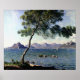 "At Cap d'Antibes" captura la serenidad y la luminosidad de la Riviera francesa. Este trabajo refleja una fascinación con los efectos de la luz y el color en el paisaje. El cuadro representa una tranquila escena costera con aguas azules brillantes, arena dorada y los Alpes lejanos. El primer plano está salpicado de una vibrante vegetación mediterránea, como los pinos y los olivos, que se representan con delicados pinceles para transmitir movimiento y luz. El conjunto es tranquilo e idílico, con el calor y la vitalidad de la costa sur francesa. Este cuadro es un excelente ejemplo de un dominio para capturar las cualidades transitorias de la naturaleza, que es central al estilo impresionista.