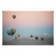 Temprano en la mañana vuelo en globo Cappadocia, Turquía. Nieve coronó montañas.