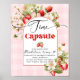 Poster de la cápsula de fresa de la baya de primer cumpleaños. Hay artículos de juego disponibles.