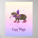Un diseño lindo y divertido que presenta a una adorable capybara hada sosteniendo una varita mágica en su boca, rodeada de estrellas brillantes. Lleva zapatos rosados de moda. Esta ilustración juguetona y soñadora es perfecta para niñas que aman los animales mágicos y las vibraciones de hadas.