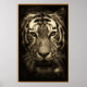 Una hermosa imagen de la cara de un tigre gruñido en tonos sepia.
