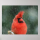 Póster Cardenal 20x16 en un pino durante una tormenta de