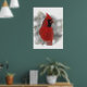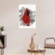 Este poster tiene un cardenal rojo brillante. ¡Él es verdaderamente el rey de los pájaros traseros! Aquí está encaramado en un riel nevado comiendo semillas negras de girasol de aceite mientras la nieve invernal gira a su alrededor.