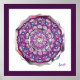 Dibujo de una vidriera de una antigua catedral europea: una ventana rosa, con toques de una gran variedad de colores, incluidos los tonos rosa y rojo cardenal, sobre un fondo rojo cardinal. Entrada de diamantes de imitación blancos (dibujado). Este motivo también está disponible en azul profundo en mis colecciones "Blue rosace". (sin IA)