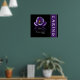 This inspirational poster features a quote about caring and courage with a purple flower that appears to be floating in water with a shimmering reflection. Current quote reads: From caring comes courage. - Lao Tzu
