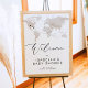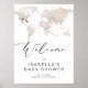 Este cartel de bienvenida para una ducha de bebé cuenta con un mapa del mundo de las acuarelas beige cremoso y un elegante tipo de letra de guión. Cambia fácilmente la redacción de *most* para que coincida con tus necesidades de eventos. Este signo de bienvenida es perfecto para su viaje temático o su aventura con la ducha o evento de bebé.