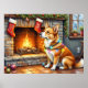 A cozy Christmas artwork featuring a loyal Carolina Dog sitting beside a glowing fireplace with festive stockings and shimmering Christmas lights. This heartwarming holiday scene highlights the Carolina Dog’s intelligent and affectionate nature, making it a perfect piece for dog lovers and festive decor enthusiasts. Bring home the warmth and magic of the holidays with this charming pet-inspired art.