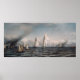 Finish - Primera carrera internacional para la Copa América, 8 de agosto de 1870, una pintura de Samuel Colman. Aunque esta obra de arte está restaurada digitalmente, las grietas y las líneas finas se dejan intactas en esta pintura para honrar el tiempo del que surgió esta pintura.