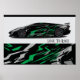 Poster mostrado con una foto impresa de un elegante auto deportivo de carrera. Se muestra en el papel poster de Value mate, pero puede actualizar y personalizar. Personalizar o compra como se muestra. Imagen de stock freepik.com