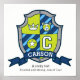El escudo estilo Caballero escudo letra C nombre de arte monograma poster perfecto para un dormitorio de niños o sala de juegos en tonos verdes, azules, blancos y grises. Personalice con el nombre y el nombre de su hijo el significado de un toque personalizado al dormitorio o vivero de los caballeros de su hijo, este ejemplo es para el nombre Carson A rocky fort. Seguro y fuerte, hijo de Carr. Impresión de posters ideal para un regalo a un niño de recién nacido, cumpleaños de niños, para un bautizo, el nombre del bebé o un regalo de ducha de bebé. Cuenta con una cara de oso, una corona, una estrella y una letra C. Dibujo único de arte gráfico y diseño de Sarah Trett. www.sarahtrett.com para www.mylittleeden.com
