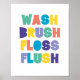 Póster Cartel de baño CEPILLO LIMPIAR ENJUAGAR