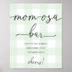 Este cartel de barra de Mom-osa de shower de bebé con gingham verde menta es perfecto para un shower de bebé simple. El diseño moderno cuenta con un diseño gingham atemporal y fuentes modernas.