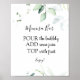 Cartel de Mimosa Bar con una ilustración de un hermoso follaje con las palabras Mimosa bar en un divertido tipo de letra de caligrafía. O edite el título para decir Momosa Bar para una fiesta de Baby Shower.