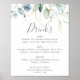 Póster Cartel de Bebidas de Boda con Verde Follaje y Hoja