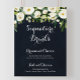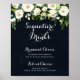 Este cartel de bebidas firmadas verde blanco floral azul es perfecto para una boda rústica. El diseño presenta elegantes peonías blancas en acuarela con follaje verde en un fondo azul oscuro. Personalice el cartel con los nombres de los novios y su bebida favorita.