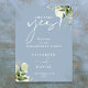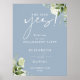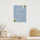 Este elegante cartel de bienvenida a la fiesta de compromiso de flores botánicas en azul polvoriento puede ser personalizado con su información en tipografía chic. Diseñado por Thisisnotme©