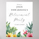 Esta elegante cartel de bienvenida de flores tropicales de acuarela con vegetación para la fiesta de jubilación se puede personalizar con su información en tipografía moderna. Diseñado por Thisisnotme©