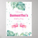 Celebra su cumpleaños con este banner personalizado tropical con mis flamencos rosados y hojas de palma verdes de acuarela. Su texto está escrito en letras rosadas, turquesa y coral. Personalice con su nombre y la fecha de la fiesta. Para ver decoraciones de fiesta botánicas tropicales coincidentes, visite www.zazzle.com/vginvites