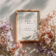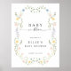 Un cartel de bienvenida para Baby Shower A Baby in Bloom con un hermoso marco floral de acuarela combinado con una fuente script y clásica. Perfecto para un baby shower de primavera o verano.