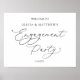 Cartel de bienvenida clásico en blanco y negro para fiesta de compromiso. El texto "Fiesta de compromiso" está escrito en estilo de caligrafía moderna.