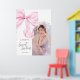 Cartel de bienvenida para cumpleaños Sweet Sixteen con lazo rosa para una celebración de cumpleaños número 16 con estética de lazo moderna y plantilla de foto