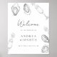 Bienvenidos a sus invitados a la fiesta de elección con este cartel de póster editable, con ostras dibujadas a mano, champán, letra manuscrita y detalles editables. Personalícelo con facilidad utilizando las opciones de "personalizar" y "editar usando diseño".