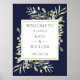 Con delicadas hojas de acuarela sobre un fondo azul marino, este elegante cartel de bienvenida se puede personalizar con la información de su día especial de boda. Diseñado por Thisisnotme©