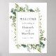 Da la bienvenida a tus invitados a tu boda con este hermoso cartel, que presenta un marco dorado rodeado de hojas y vegetación de eucalipto. Agrega los nombres de la pareja, la fecha y el texto de bienvenida personalizado utilizando los campos proporcionados.
