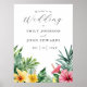 Este elegante cartel de bienvenida de boda con flores tropicales acuarela y vegetación puede personalizarse con su información en tipografía moderna. Diseñado por Thisisnotme©