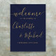 Póster Cartel de bienvenida de boda en azul marino y dora