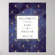 Con lunas y estrellas doradas, este elegante cartel de bienvenida celestial se puede personalizar con la información de su día especial de boda. Diseñado por Thisisnotme©