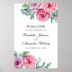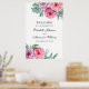Póster Cartel de bienvenida de Boho. Flores rosadas bodas