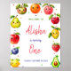 Bienvenido a los huéspedes con estilo con este signo de bienvenida de cumpleaños de Chica Cute Fruit. Con frutas kawaii sonrientes como fresas, piñas y sandía, este alegre diseño le da un tono lúdico a su celebración de verano. Los colores pastel y las caras alegres son perfectos para una fiesta de cumpleaños de un niño o una niña. Personalizar con el nombre y edad de su hijo para crear una entrada dulce y divertida a su evento. Ideal para fiestas al aire libre, temas de picnic o reuniones bajo techo. ¡Una adición bonita y vibrante a tu decoración fiesta!