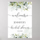 Cartel de bienvenida de ducha de novia de eucalipto con vegetación. Artículos coincidentes disponibles.