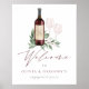 Esta elegante señal con tema de degustación de vinos es la forma perfecta de dar la bienvenida a los invitados a su despedida de soltera, fiesta de compromiso, boda o cena de ensayo organizada en una bodega, sala de degustación o viñedo. El diseño presenta una botella de vino tinto borgoña y dos copas de vino y adornado con hojas de eucalipto y follaje de acuarela verde. "Bienvenidos" aparece en elegante letra de caligrafía, con dos líneas de texto personalizado para el nombre de su evento y los invitados de honor. Para un toque final, personalice la etiqueta de la botella de vino con las iniciales de la pareja.