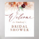 Cartel de bienvenida de fiesta de novia con flores de terracota y hierba de Pampas