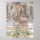 Añada un toque personal y elegante a su día de boda con este magnífico cartel de bienvenida de la cena de ensayo. Con suaves acentos de color de agua verde para un aspecto fresco y atemporal, este signo editable le permite subir su propia foto como fondo, haciéndola única suya. Perfecto para saludar a los invitados en su evento, esta plantilla es totalmente personalizable. Actualice fácilmente los nombres, la fecha del evento y la foto favorita para que coincidan con su estilo. Características: Elegante diseño de color de agua verde Carga y muestra tu propia foto como fondo Haz una primera impresión impresionante con un cartel que refleja tu historia de amor y marca el tono para tu día especial.