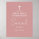 Este elegante cartel de bienvenida de rosa polvorienta para primera comunión se puede personalizar con su información en tipografía chic. Diseñado por Thisisnotme©