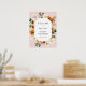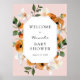 Bienvenidos a la fiesta de baby shower con este precioso cartel, que incluye un marco dorado rodeado de flores de naranja y clementinas. Agrega el nombre de la invitada de honor, la fecha y el texto de bienvenida personalizado en los campos indicados.