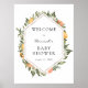Da la bienvenida a tus invitados al baby shower con este hermoso cartel, que presenta un marco dorado rodeado de clementinas, naranjas y vegetación. Agrega el nombre de la invitada de honor, la fecha del shower y el texto de bienvenida personalizado utilizando los campos proporcionados.
