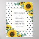 Bienvenidos a su baby shower con este hermoso cartel, con un marco dorado rodeado de hojas de eucalipto, girasoles y vegetación. Agregue el nombre de la homenajeada, la fecha del shower y el texto de bienvenida personalizado utilizando los campos proporcionados.