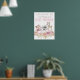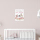 Cartel de baby shower de niña en bosque con un zorro, conejo, mapache, ciervo, ardilla y pájaro adorables en acuarela sobre un fondo de madera rústica y flores en acuarela. Este cartel de baby shower en bosque es fácilmente personalizable para tu evento simplemente añadiendo tus detalles en el estilo de letra y color que prefieras.